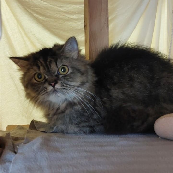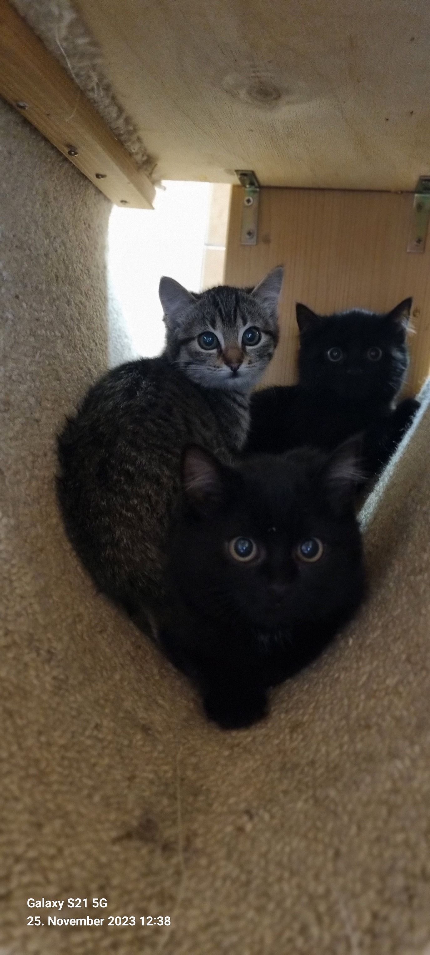 Die beiden Schwestern sind im November 2023 geboren, nachdem Carlotta ihre Kitten aufgezogen hat und Camilla ihre Blasenentzündung los geworden ist, durften die beiden wieder in eine WG in unserem Katzenhaus ziehen. Es dauerte nicht lange bis sie sich wieder aneinander gewöhnt hatten. Die beiden kuscheln sehr viel miteinander, vor allem wenn wir Pfleger kommen und sie mit Wurmkuren oder ähnlichem belästigen, suchen sie beieinander Schutz. Beide sind trotzdem nicht ganz abgeneigt von uns, sie kommen wenn es Futter gibt und schauen schon mal neugierig was wir machen. Das ist ein guter Anfang finden wir. Schneller auftauen würden die beiden mit Sicherheit in einem neuen Zuhause.